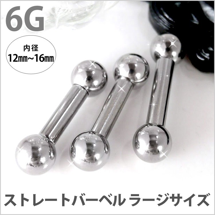 ボディピアスの定番商品、ストレートバーベル。広げて拡張したラージホールを持つ上級者に特におススメの6Gボディジュエリーです。