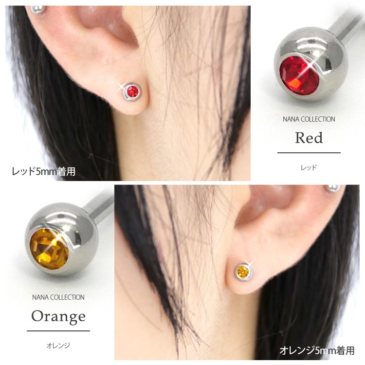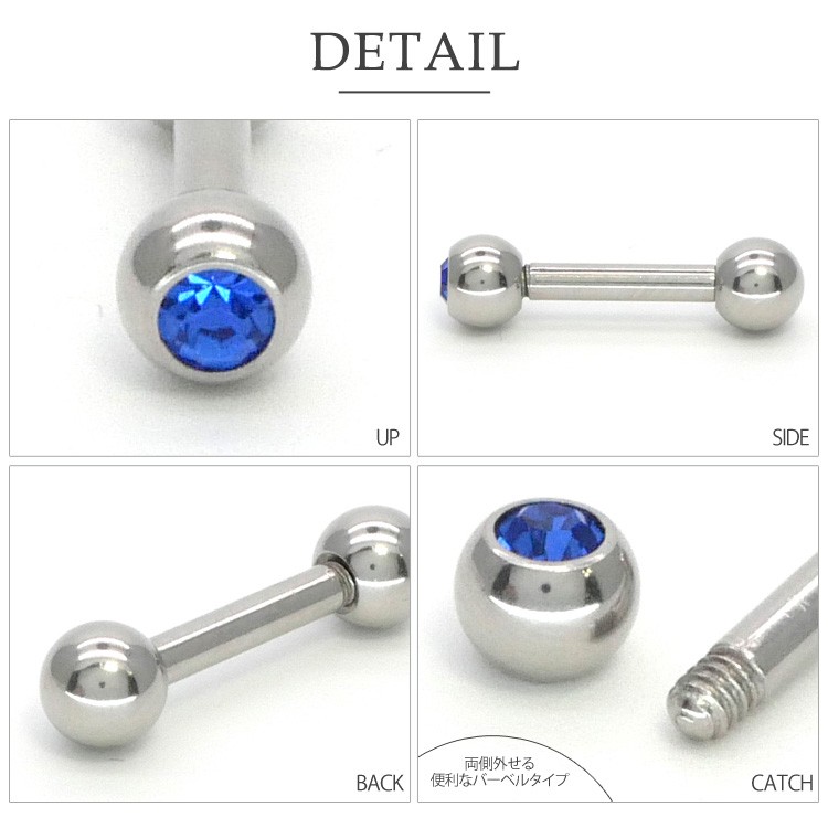ボディピアスの定番商品、ストレートバーベルをコーディネートが楽しくなるジュエルボール付きのカスタムタイプでご提供。