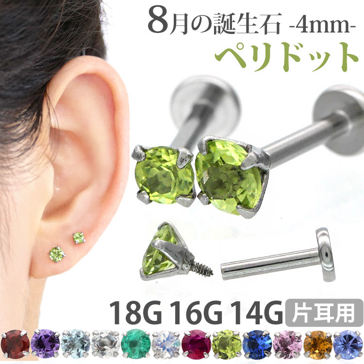 | 今や不動の人気を誇る、キラキラジュエルヘッドのボディピアスに誕生石が登場しました。 ジュエルは4つの爪でしっかりセッティングされているので、どんな時でもどの部位でも安心です。 太さは人気の16G、18G、14Gをご用意致しました。 しかも、ホールに優しいインターナル(内ネジ)タイプ。 ネジ山が直接ホールに触れないため、ファーストピアスにもお勧めです。 耳たぶピアスに、軟骨ピアスに、もちろん口ピアスに、究極カスタムで自分だけのボディピアスを楽しめる自慢のアイテム。 ピアスの材質には、金属アレルギーにも安心の医療用素材”316Lサージカルステンレス”を採用しています。 時間がたっても変色や変形しにくく、金属の輝きが色あせません。 |