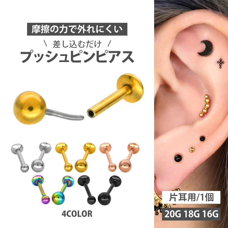 ・トラガスのような狭い部位でも指一本でカチッと留めることができ、ピアス初心者の方からベテランの方まで幅広く支持されている大人気アイテムです。