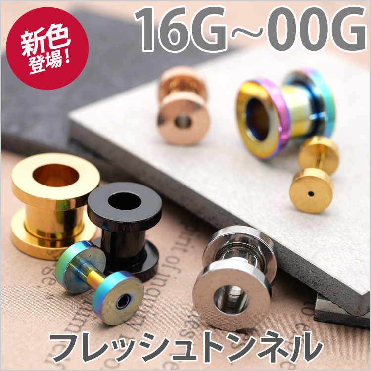 🔳 Point 01|ラージホールの代名詞。向こう側が覗く「フレッシュトンネル」・大きなピアスホールを活かす、ボディピアスの王道アイテム。名前の通り、耳の向こう側がトンネルのように貫通して見えるのが最大の特徴です。