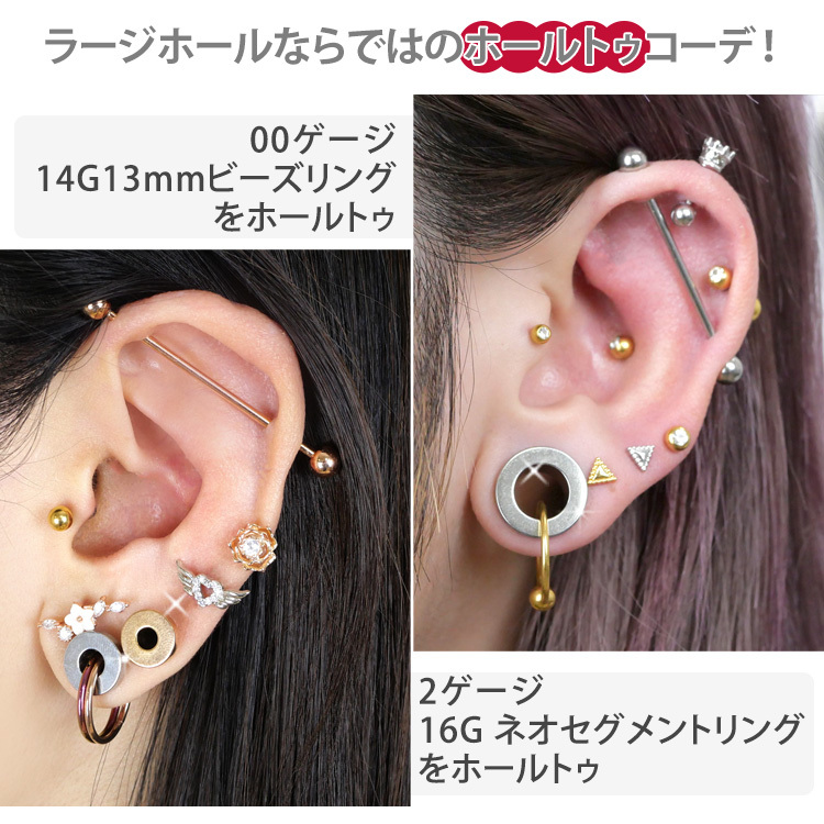 🌸 Point 03|圧倒的なサイズ&カラー。一段階ずつの拡張にも最適・16Gの細めサイズから、00Gや最大25mmという圧倒的なラージサイズまで豊富にラインナップ。自分のペースで一段階ずつ拡張を楽しみたい方にもぴったりです。