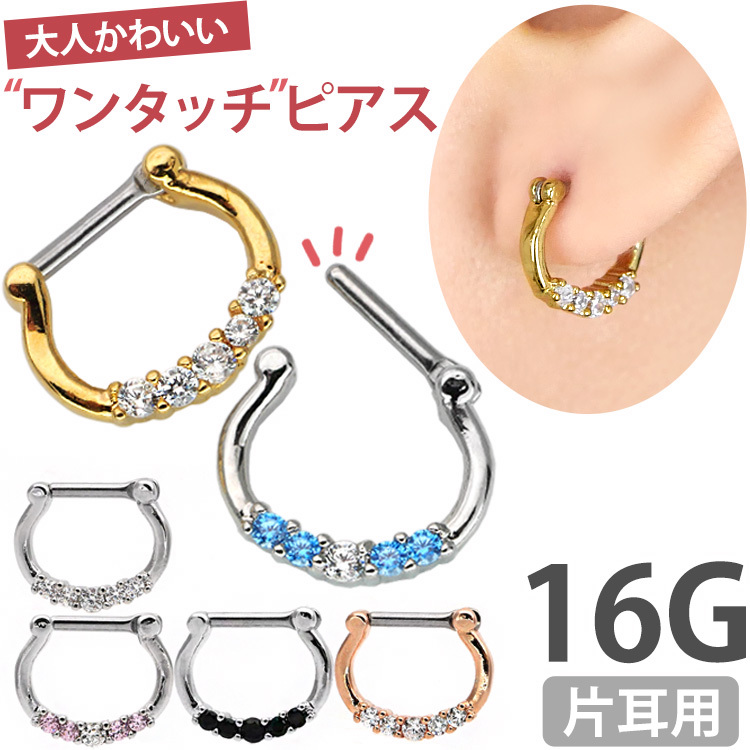 ボディピアス 16G 軟骨 ブリリアントパレスリング 16G 可愛い ヘリックス トラガス ボディー カチッと装着