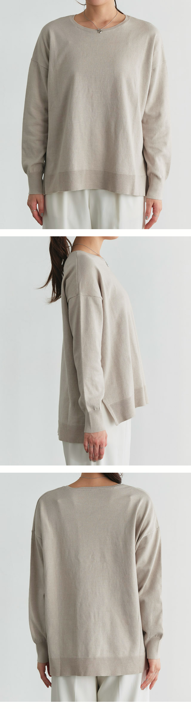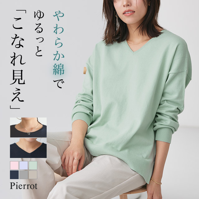 着回し力抜群のベーシックシリーズ“ネックが選べるコットンミックスオーバーニット”
