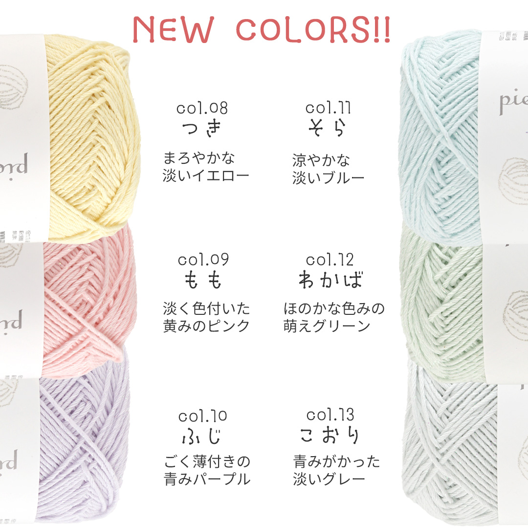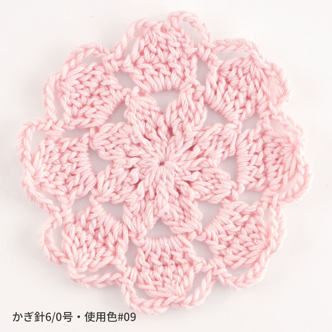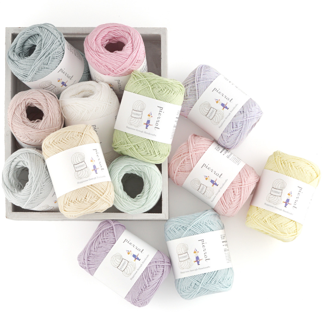 春夏の作品にぴったりで、透かし模様のウェアやモチーフ編みなどの小物まで幅広く使えます。