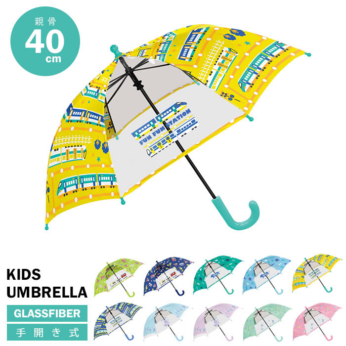 傘 かさ 雨傘 子供用 キッズ 長傘 40cm 男の子 女の子 黄色 電車 軽量 入園 透明 透明窓 手開き式 まとめ買い 誕生日 プレゼント