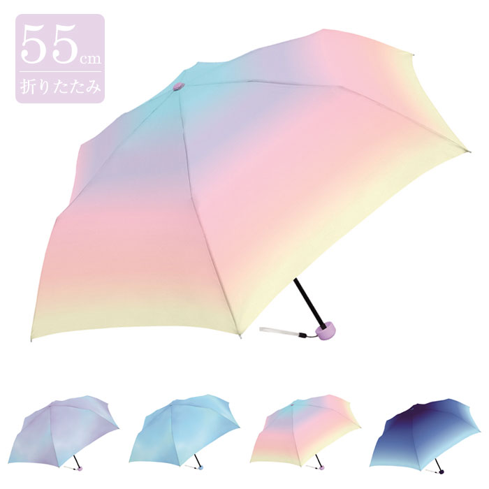 傘 レディース かさ 雨傘 折りたたみ おしゃれ 子供用 こども 子ども キッズ 折り畳み グラデーション まとめ買い 手開き式 55cm プレゼント