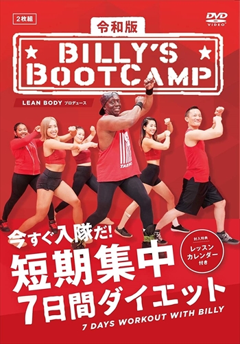 | 【封入特典】 レッスンカレンダー 150万部の大ヒット商品「ビリーズブートキャンプ」が令和版として新登場! 今すぐ入隊だ! 短期集中7日間ダイエット! ! 【作品内容】 DAY1:脂肪燃焼 - やる気アクセルを踏もう DAY2:お腹の脂肪燃焼 - お腹を絞って燃やせ DAY3:脚&お尻 - ミッション 下半身を変える DAY4:二の腕&上半身 - ハミ肉にサヨナラ DAY5:脂肪燃焼&お尻 - 人生をかけたヒップアップ DAY6:二の腕 with ペットボトル - 腕と肩のシェイプアップ DAY7:お尻&脚 with 椅子 - 自分の殻を抜け出せ ■■用意するもの■■ ・床が硬い場合はマット ・ペットボトルなどの重り(Lesson6) ・椅子(Lesson7) 【作品ポイント】 150万部を超える大ヒットを生み出したビリーズブートキャンプのビリー隊長が日本へカムバック! 日本人向けに新たに考案された令和版ビリーズブートキャンプ ★日本中を席巻した究極のエクササイズ。あの頃のカラダをもう一度! 24時間で変化を感じ、7日間で効果を実感。6週間であなたは変われる。 全身の有酸素運動に加えてお腹・脚・お尻・二の腕と女性が気になる部位への集中トレーニング。最大燃焼カロリー1600kcal。 ダイエットと肉体改造に最も効果的な、有酸素と筋トレを組み合わせたトレーニング 日本人向けにオリジナルで考案。ペットボトルや椅子など身近なアイテムで効果的に鍛えられる方法も紹介。 ・夏に向けて、ビキニを着こなしたい ・たるんだ下半身を徹底的に引き締めたい! ・キュッと締まったヒップと細い脚を手に入れたい! ・二の腕のプルプルにサヨナラ! そんな望みをかなえる、最強の脂肪燃焼プログラム「令和版 ビリーズブートキャンプ」。 ★ビリー隊長となら乗り越えられる! ビリー隊長のエクササイズは「厳しいけれど、ヤル気を引き出してくれる、あきらめずに続けられる、そして結果を出そう! 」 「辞めるな、諦めるな! 」 「何かを叶えたいなら、まずは終わらせるんだ! 」 「トレーニングは流行りじゃない、ライフスタイルなんだ! 」 厳しさはビリー隊長の愛の証。時には叱り、時には励まし、時には笑わせてくれるビリー隊長のトークが、やる気にしてくれる! 40年ものキャリアを積み、美しい体を作るノウハウを知り尽くしたビリー隊長なら、必ず理想の体に導いてくれます。 【あらすじ】 2005年に発売し、150万部の大ヒットを生み出したビリーズブートキャンプ が令和版として新登場。ブートキャンプとは、元々軍隊で実践されていた短期間でカラダを絞り込むためのトレーニング方法。 米国陸軍で特別指揮官を務めてきたビリーが、軍隊式トレーニングを元に編み出した独自のエクササイズ。 令和版では日本人向けの強度に合わせて約30分間の7本で構成され、脂肪燃焼・お腹・脚・お尻・二の腕と気になる箇所を集中的に鍛えていく。 ペットボトルや椅子など家にあるものを使って気軽に実践できるように開発された。 ビリー隊長と共にあの頃の体型を取り戻そう! 【キャスト】 ビリー・ブランクス、RISA、渋谷美穂、Hiromi、Daichi Sakamoto、アンジェリカ・ブランクス 日本語吹き替え:小杉十郎太 ■ビリー・ブランクス Billy Blanks [プロフィール] 1955年、米国ペンシルベニア州に生まれる。空手世界チャンピオンに7度輝き、そのほかの国際試合でも合計36個の金メダルを獲得。 武道のエッセンスを取り入れた格闘技エクササイズの元祖として知られ、シェイプアップを目的とした「ビリーズブートキャンプ 」「Tae Bo?」などのエクササイズビデオで社会現象ともなるフィットネスブームを生み出す。 世界106カ国でレッスンを行い、彼のエクササイズは「短期間で効果が出る」「人生で最もスタイルをよくする」と長年に渡り愛される。 インストラクター歴40年を迎え、“ビリー隊長"の愛称で多くのフィットネスファンを魅了する世界トップのインストラクター。 【スタッフ】 監督・プロデューサー:鞍立寛子 <仕様> DVD ■品番:TCED5111 ■JAN:4562474214629 ■発売日:2020.06.24 出演: ビリー・ブランクス, RISA, 渋谷美穂, Hiromi, Daichi Sakamoto 監督: 鞍立寛子 形式: 色, ドルビー ディスク枚数: 2 販売元: TCエンタテインメント 発売日 2020/06/24 時間: 228 分