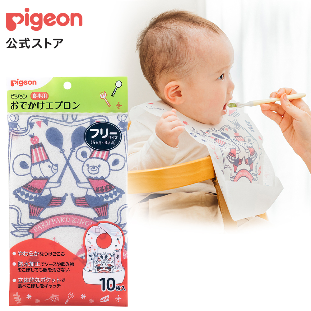 「ピジョン 食事用 おでかけエプロン」は外食や旅行などおでかけ時に便利な、使い捨ての食事用エプロンです。