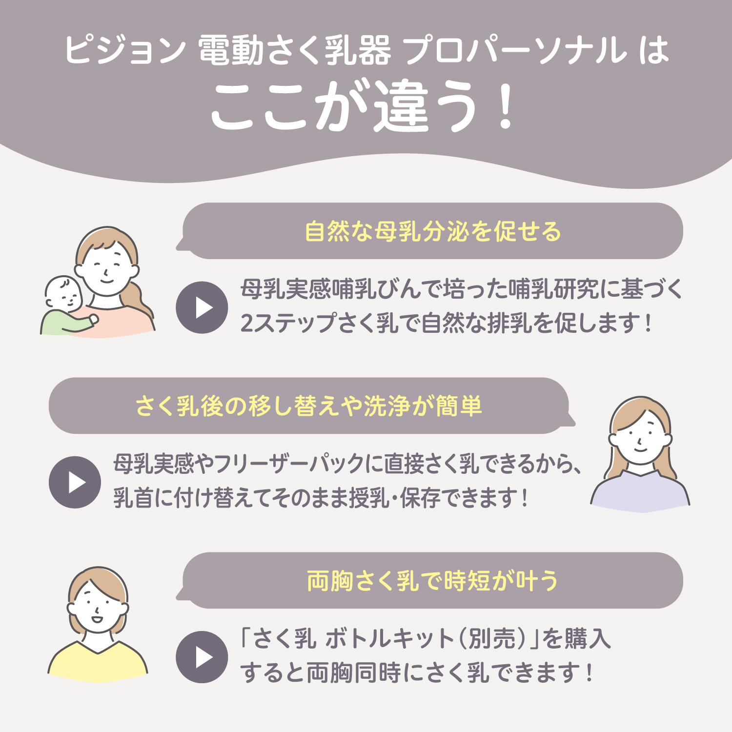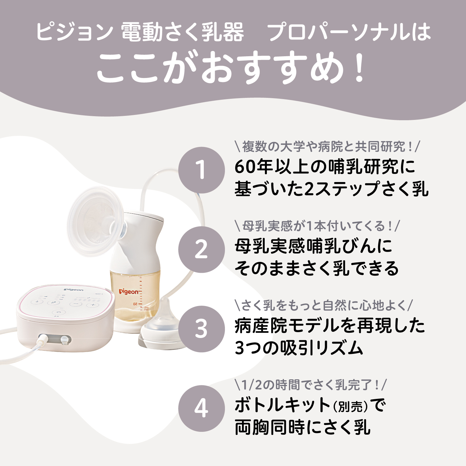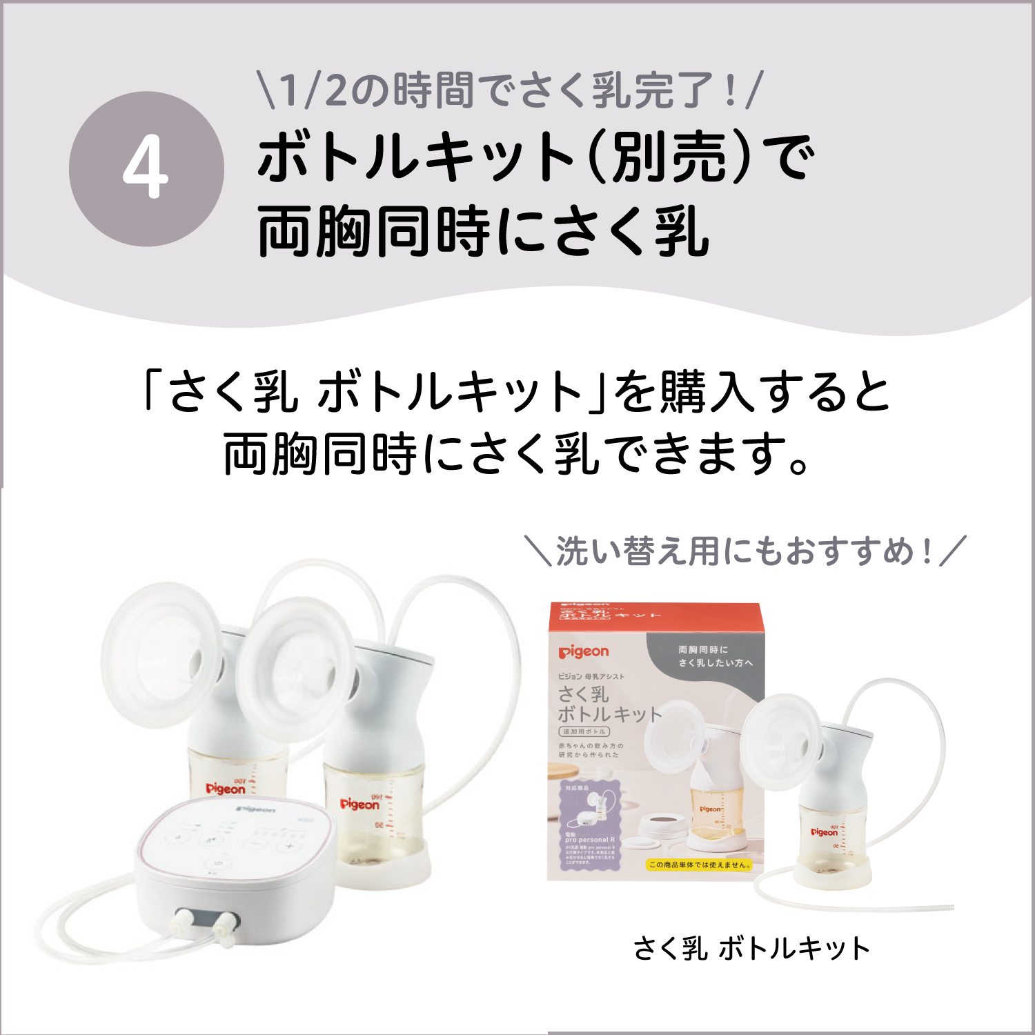 別売りのさく乳器 電動pro personal Rと組み合わせると両胸同時に効率よくさく乳できます。