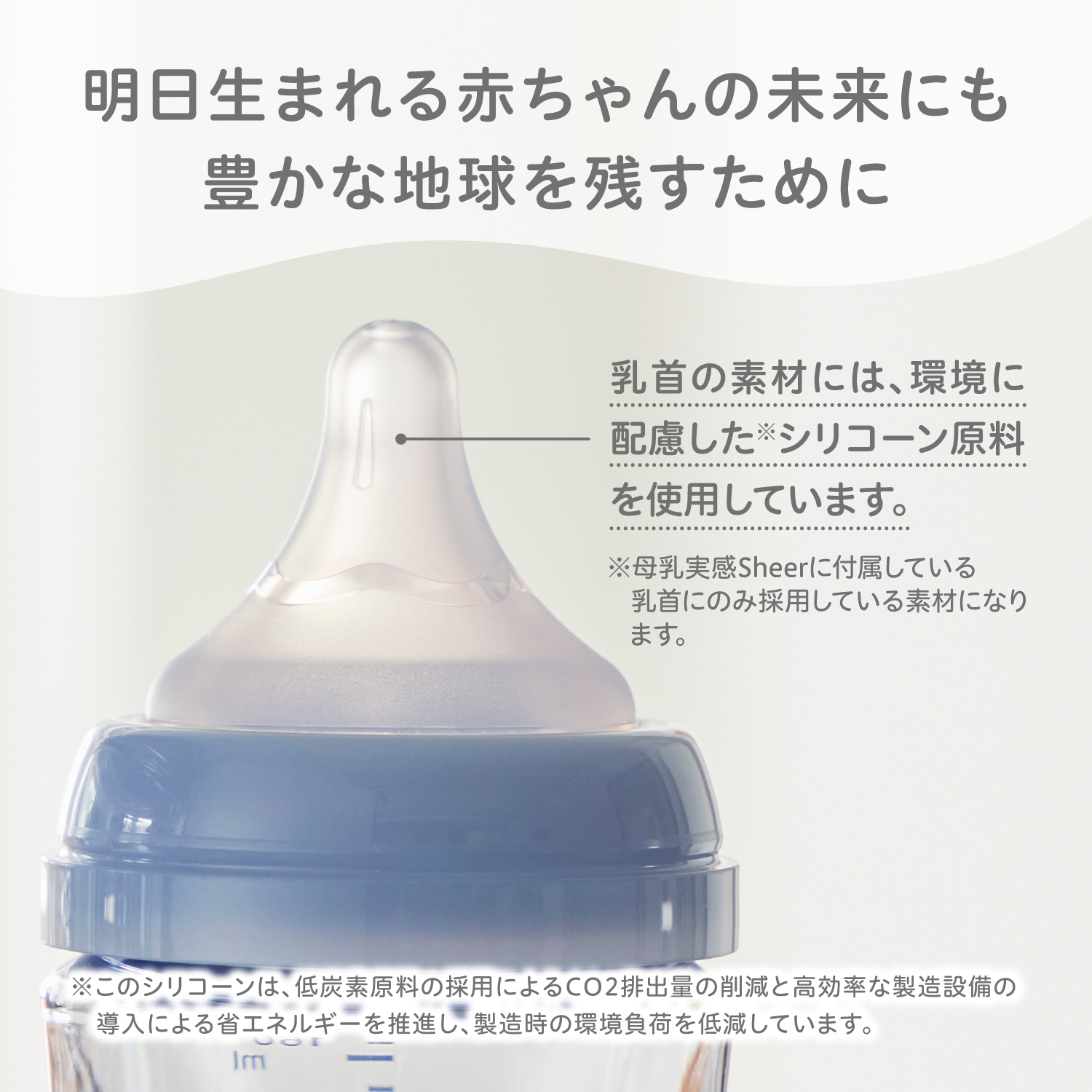 さらに乳首の素材には、環境に配慮した※シリコーン原料を使用しています。