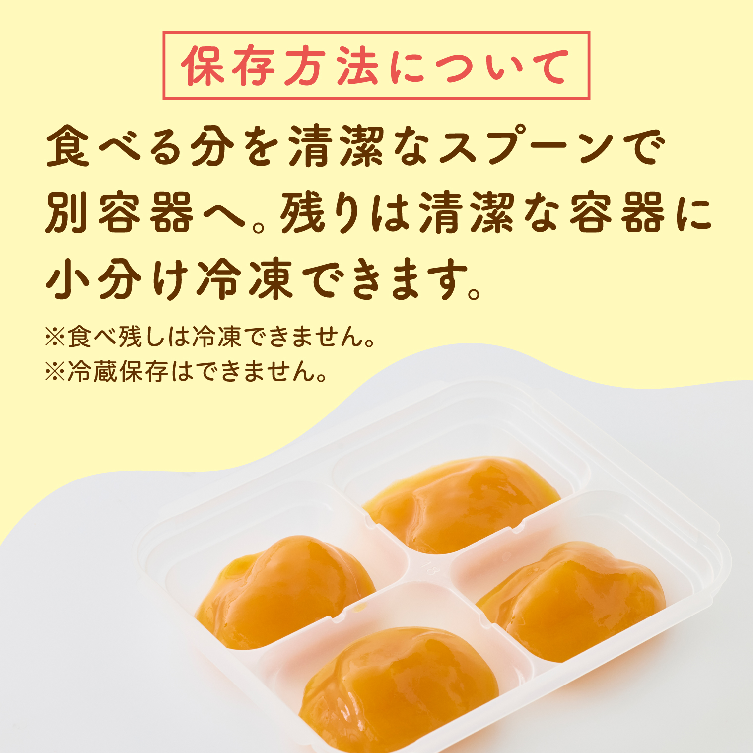 ●食べる分を清潔なスプーンで別容器へ。残りは清潔な容器に小分け冷凍できます。食べ残しは冷凍できません。