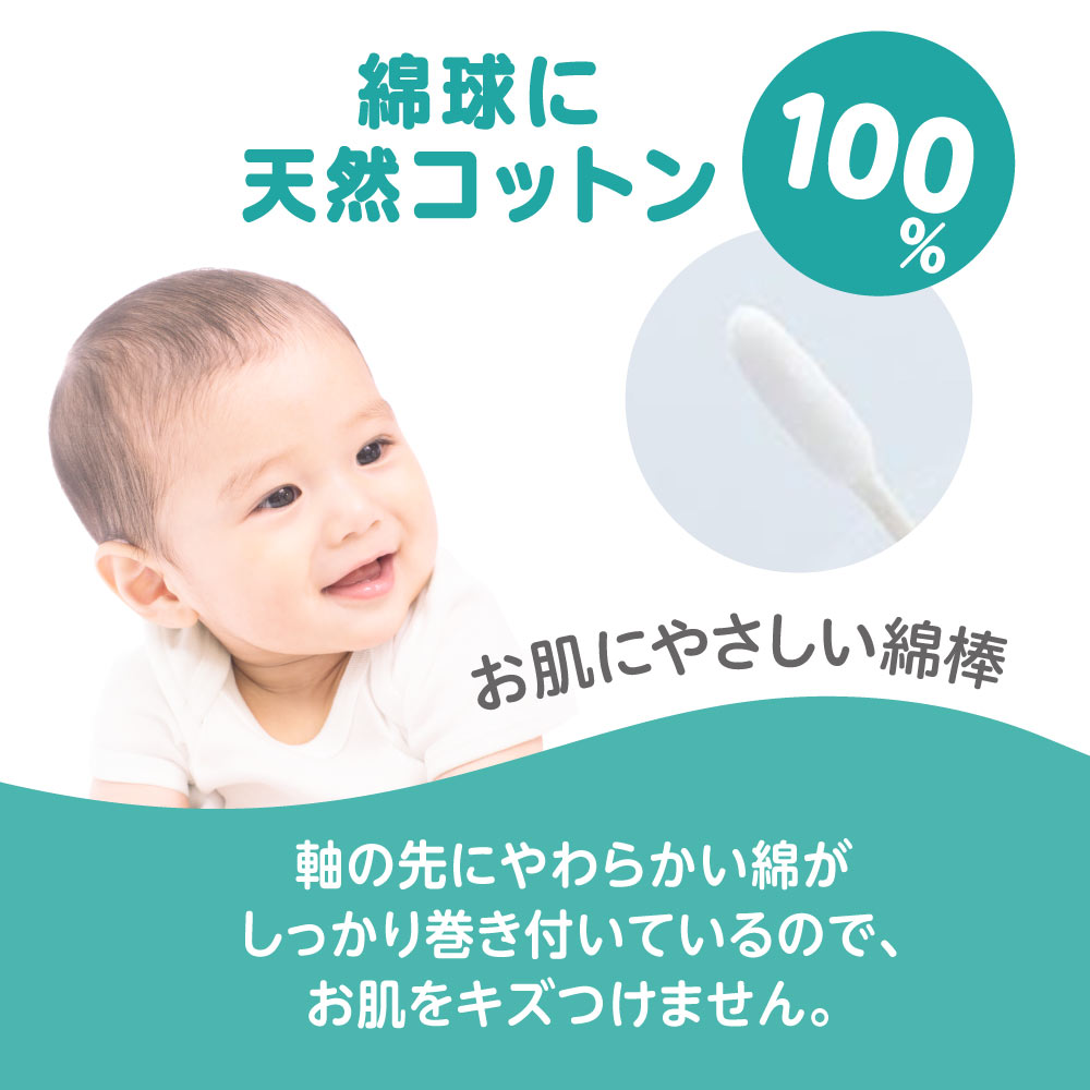 ●綿球の部分が細いため、赤ちゃんの耳、鼻のお手入れがムリなくできます。