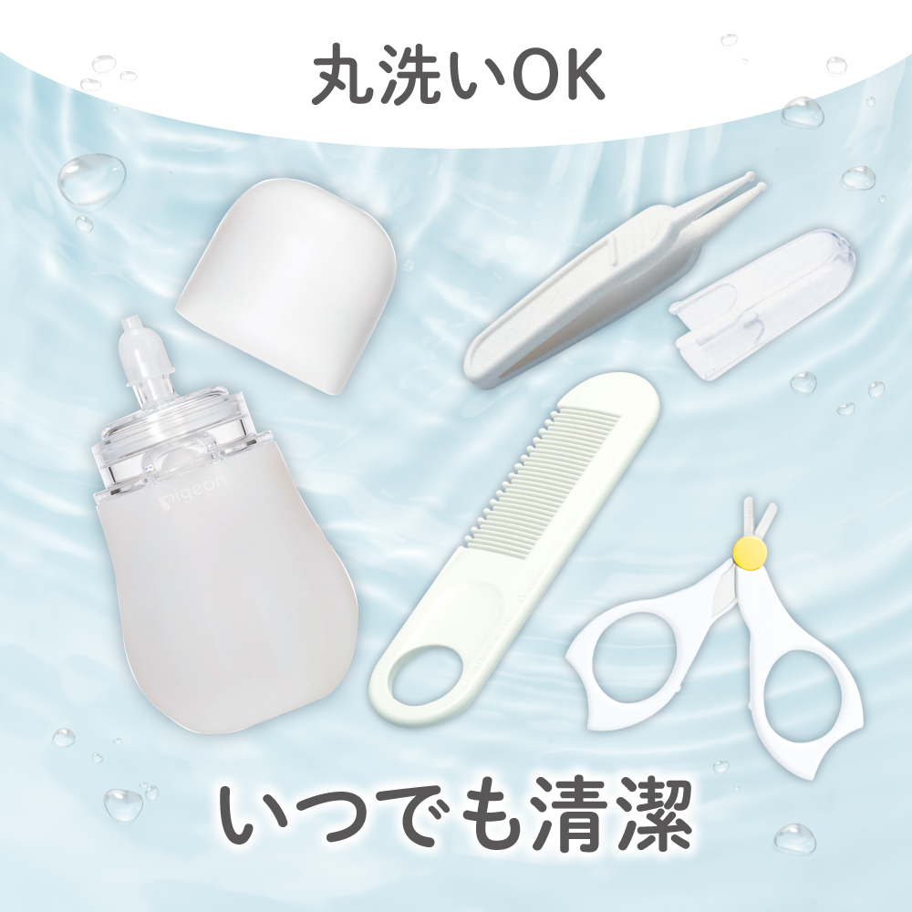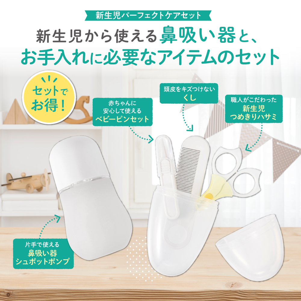 手動鼻吸い器+新生児おていれセット。