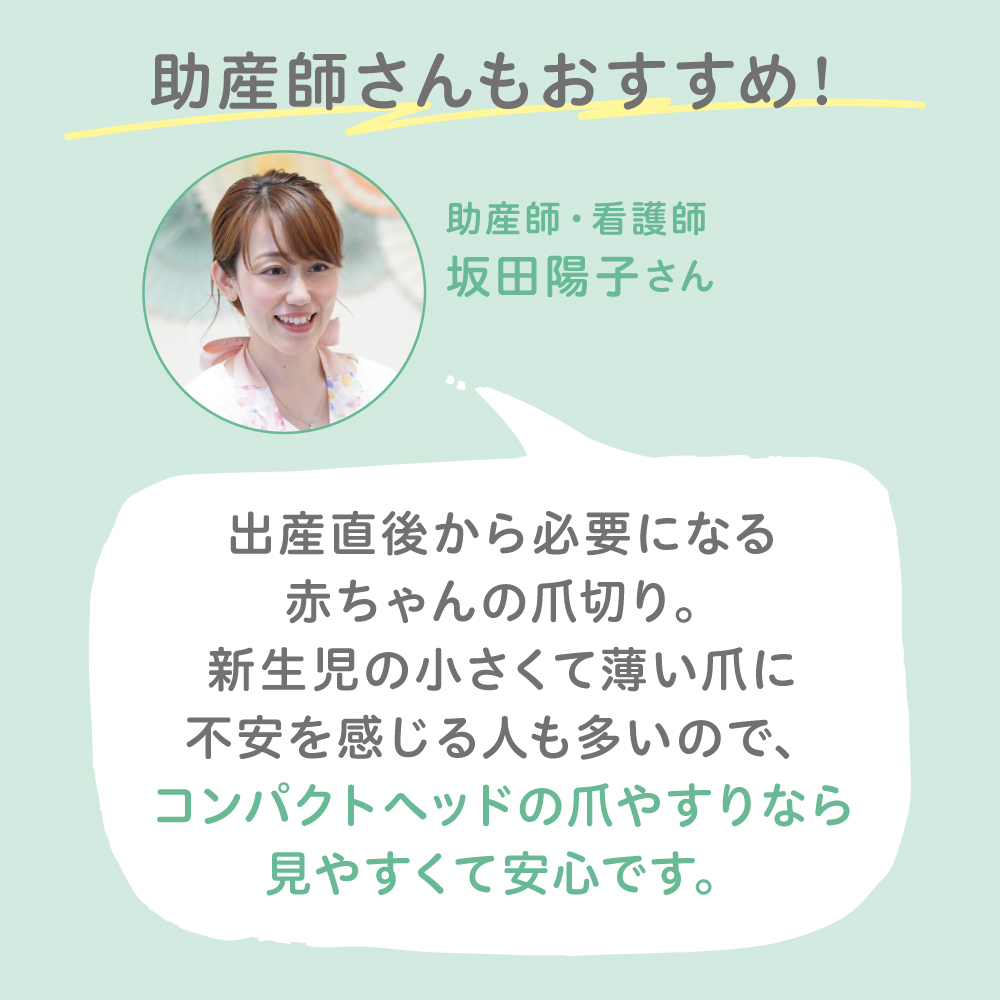 ・先端が丸く、小さく薄い刃なので赤ちゃんに安心してお使いになれます。