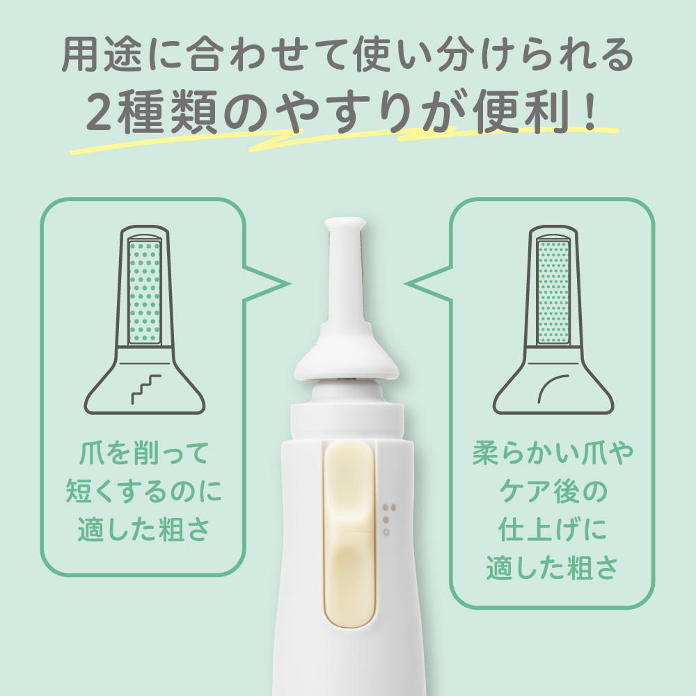 やすりが緩やかに動くため、つめケアに慣れていなくても、安心して使える。