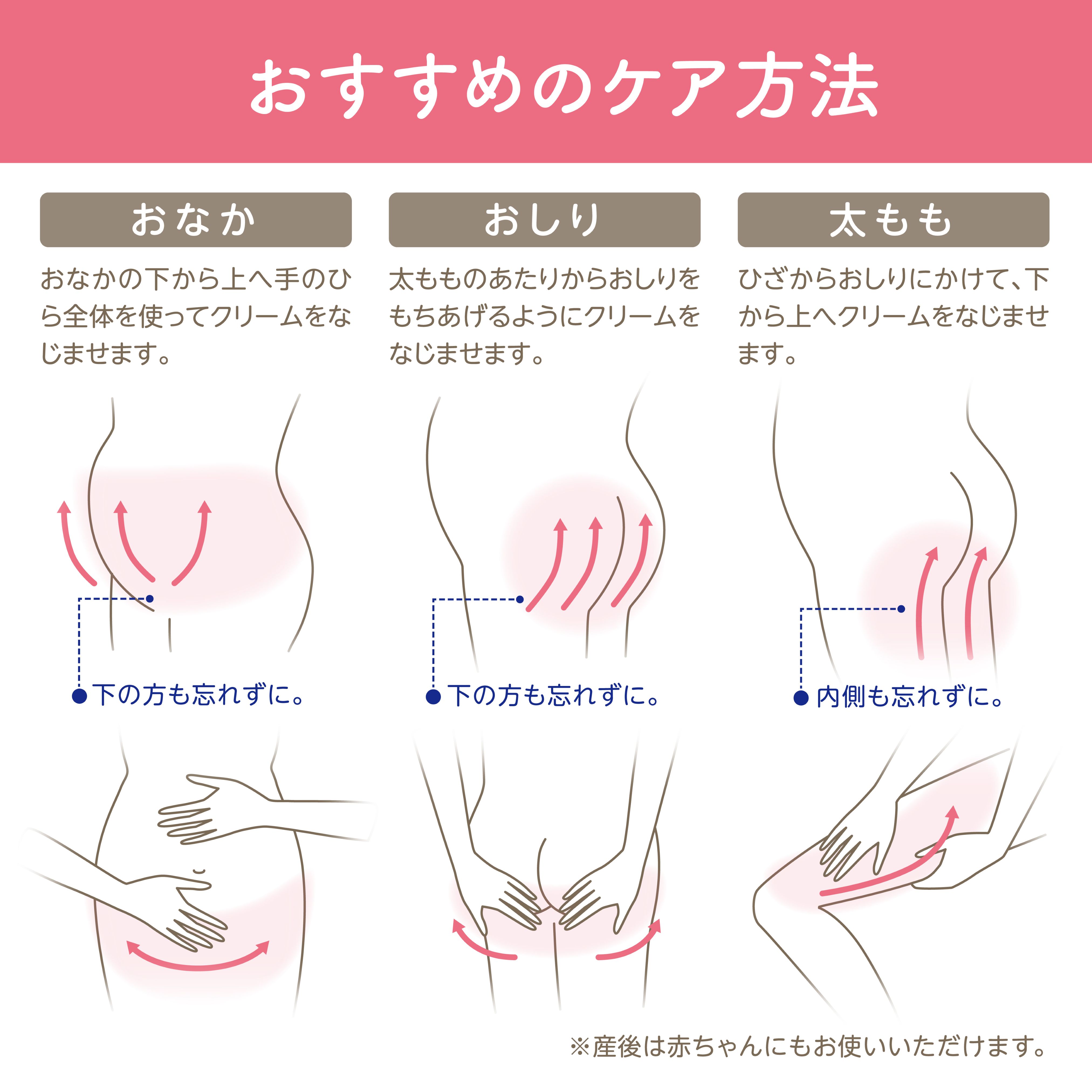 ●お風呂あがりなどにマッサージなしでケアできます