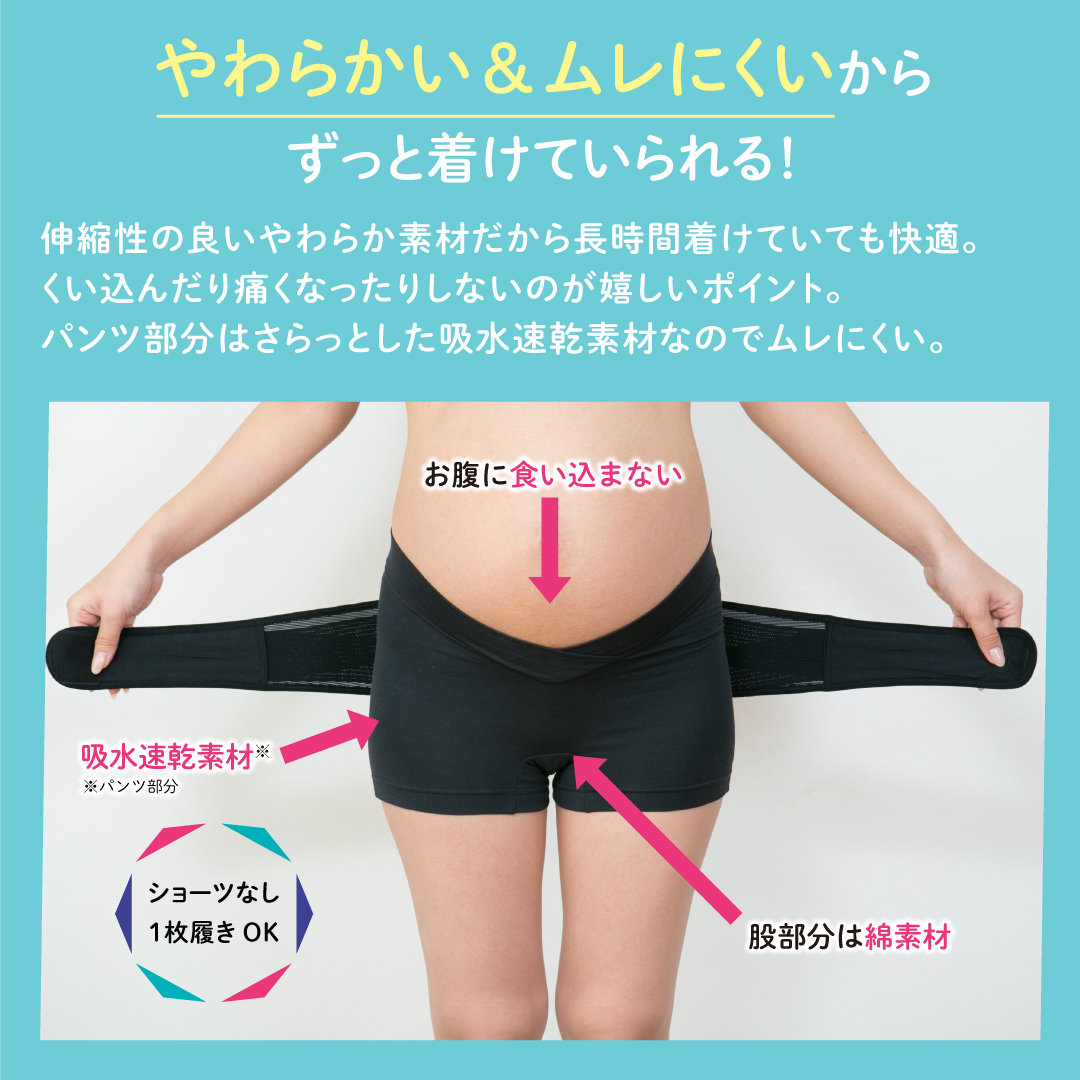 パンツタイプなので、ベルトを骨盤位置に合わせなくても履くだけでOK。着けはずしもラクチン。