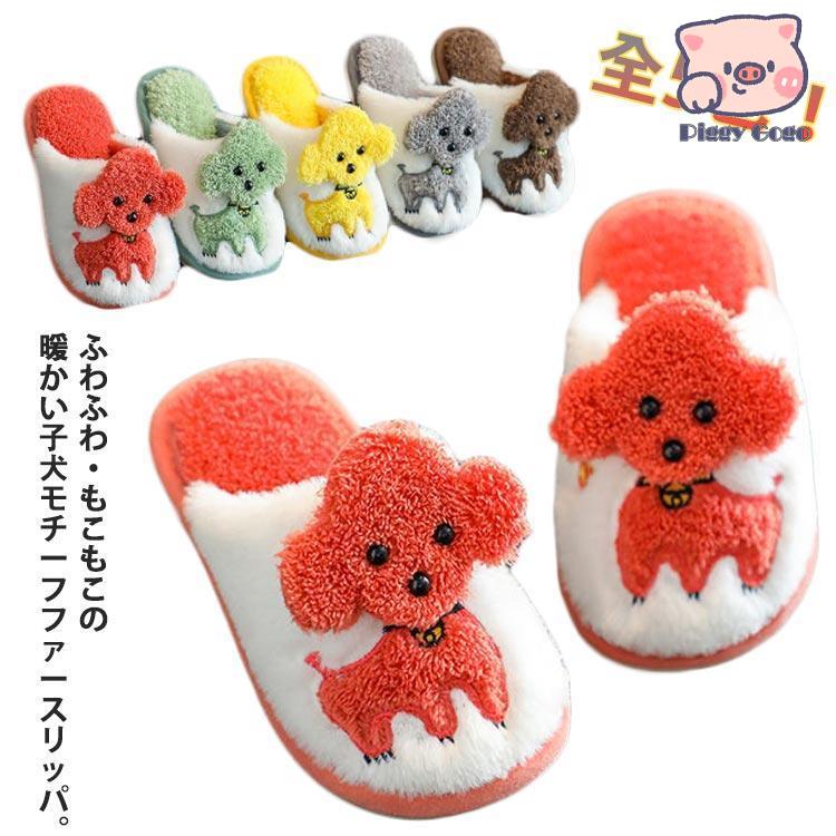 ルームシューズ 子供 スリッパ ファースリッパ キッズスリッパ 子供ルームシューズ もこもこ 子犬 萌える イヌ 子供靴 秋冬 可愛い 静音 滑りにく