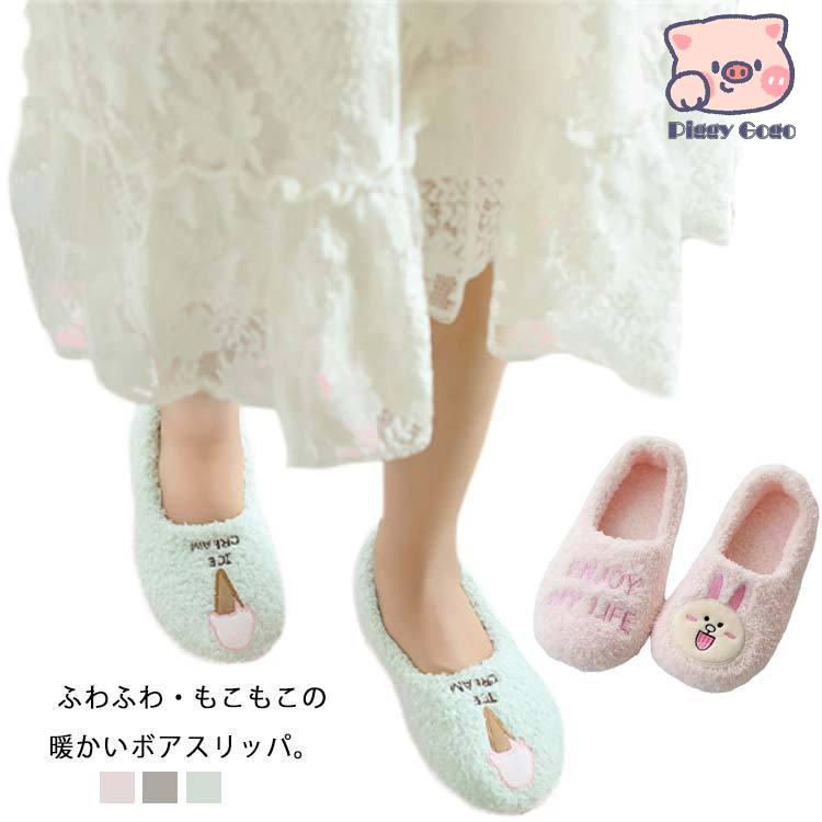 秋冬 かかと付き ルームシューズ もこもこ 入院準備 可愛い スリッパ レディース