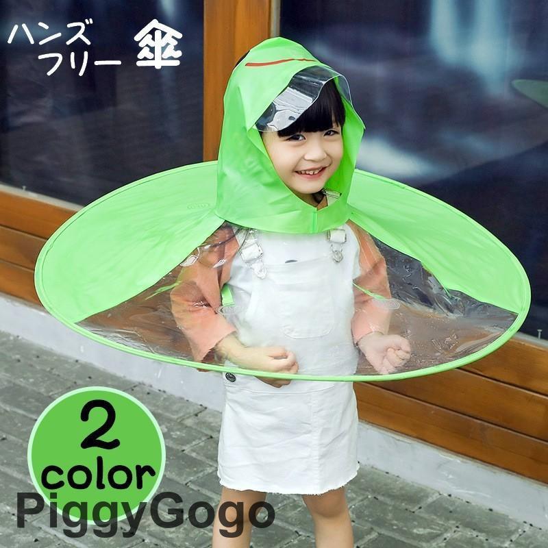 ハンズフリー傘 キッズ 子供用 帽子風傘 キャップレインコート レインハット風 ポンチョ風 雨具 レインウェア 雨合羽 雨がっぱ アヒル カエル かわ