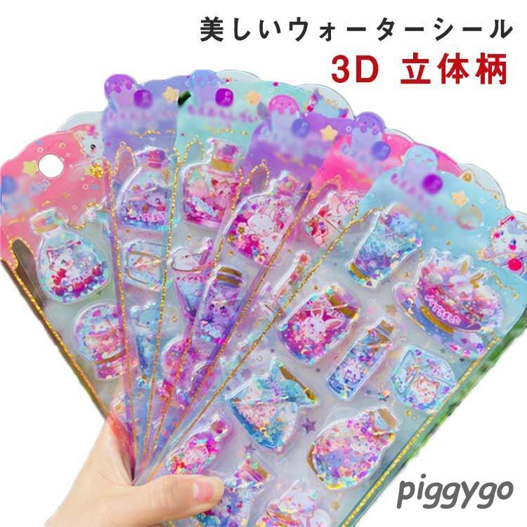 4枚セット ぷっくりシール 可愛い 水入りシール ごほうびシール 立体 幼稚園 ドロップシール ウォーターシール デコシール 猫 ビーズ入り ぷくぷく