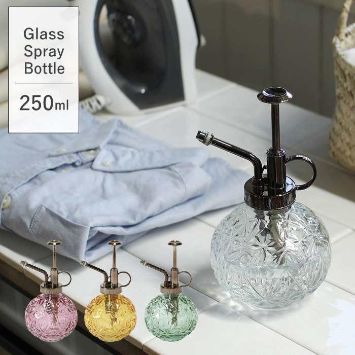 スプレーボトル ミスト おしゃれ 霧吹き 観葉植物 ガラス 細かい 250ml スプレー 水やり 散水 アイロン プッシュ