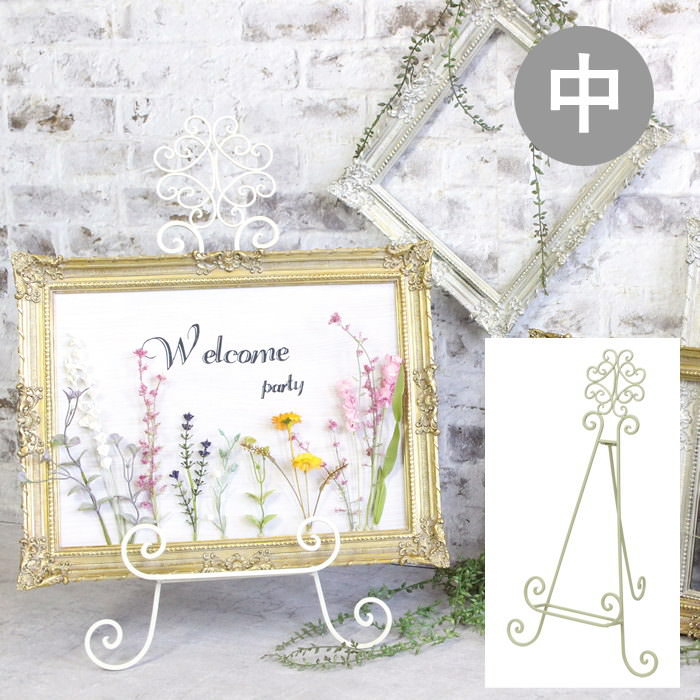 ●絵画や写真の展示はもちろん、ウェルカムボード置きとしても使用でき、パーティーやイベントでのメッセージボードとしても活躍します。また、リーススタンドとしても利用可能で、用途は多岐にわたります。