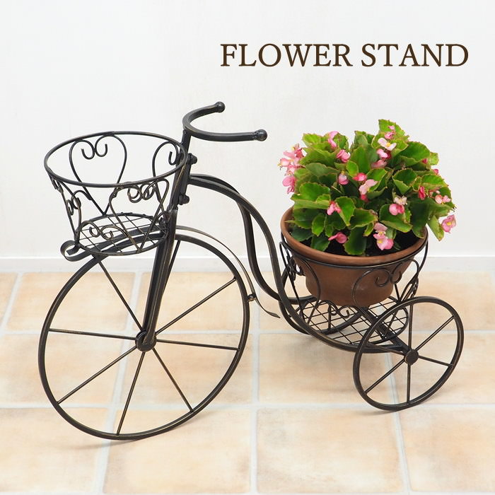 フラワースタンド おしゃれ ガーデン オーナメント 室内 屋外 ガーデニング アイアン 雑貨 三輪車 花台 アイアンプランタートライシクルブラック
