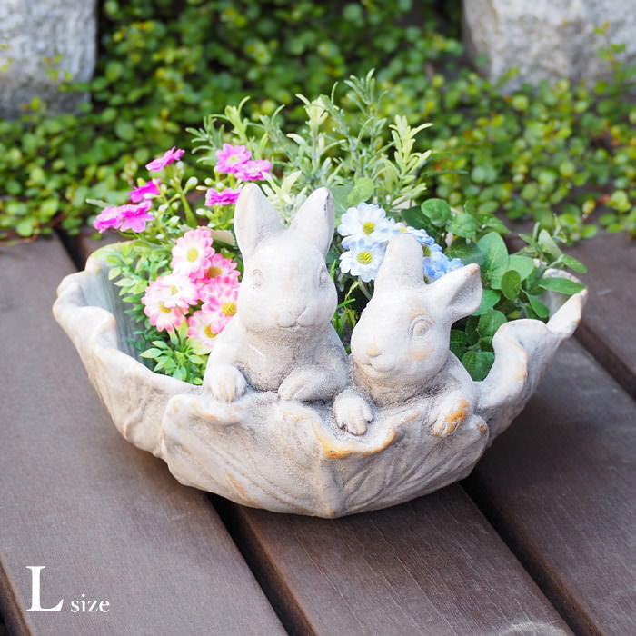 植木鉢 おしゃれ プランター ポット 屋外 アンティーク 動物 植物 セメントうさぎ