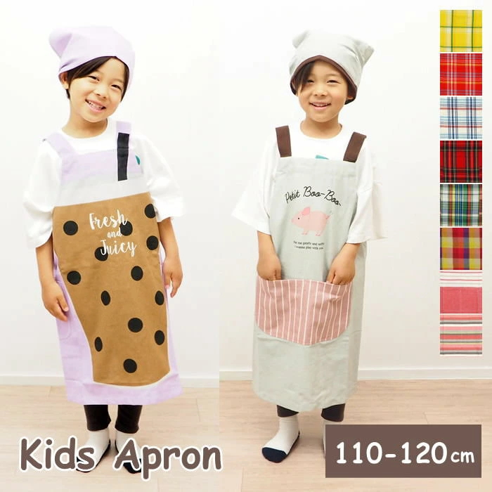●110〜120cmサイズの子ども用エプロン。お揃いの三角巾つき♪性別を問わない おしゃれなデザインです。