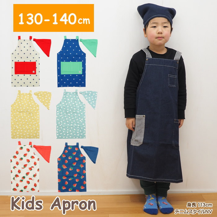 即出荷 エプロン 子供 130 140 おしゃれ h型 三角巾 キッズ 男の子 女の子 かわいい