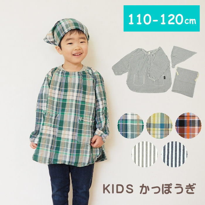 かっぽうぎ スモック キッズ 子供用 三角巾付き セット かっぽう着 エプロン 男の子 女の子 100 110 120