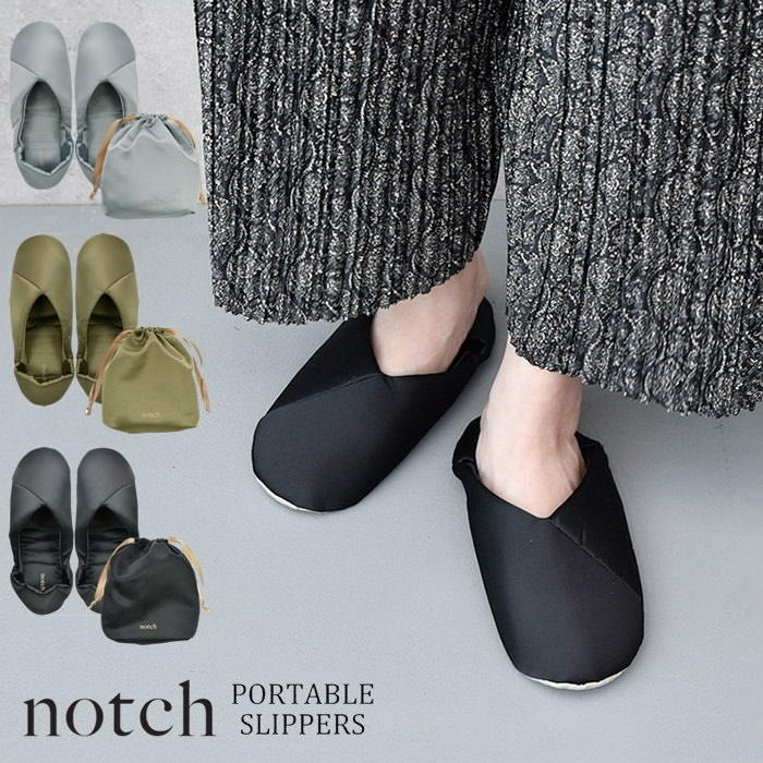 ●着ポーチ付きで、コンパクトに折りたたんで収納できます。かかとを踏んでも履くことのできる2way仕様。