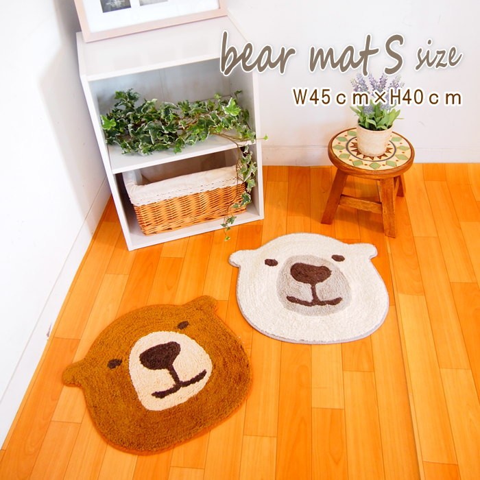 ラグ ラグマット 45×40cm 玄関マット フロアマット 綿 コットン マルチ 洗える かわいい ベアフェイスマット S シロクマ クマ 6342-1201 6342-1203