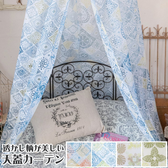 ●インテリアのアクセントになる、きれいな透かし柄の天蓋付きカーテン。