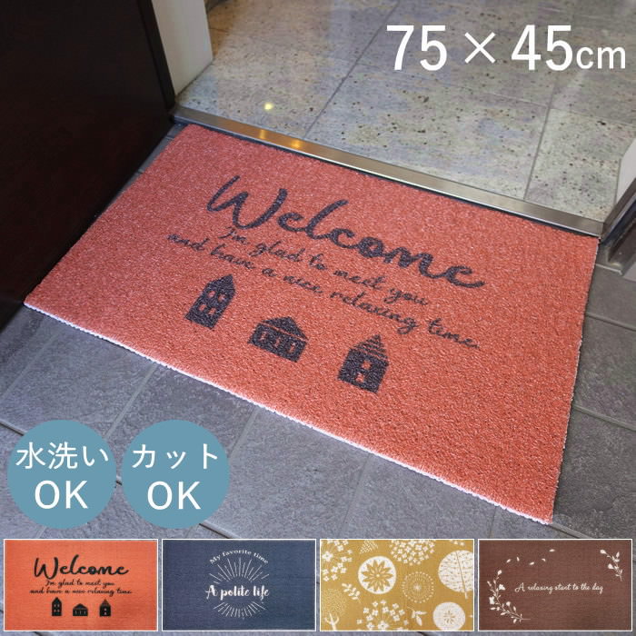 玄関マット 屋外 屋内 室内 おしゃれ 洗える ドアマット エントランスマット 泥落とし 滑り止め 黄色 風水 オレンジ かわいい ウェルカムマット 75×45cm 北欧 インテリア フロア テラス ベランダ ガーデン 庭 キッチン 丸和貿易