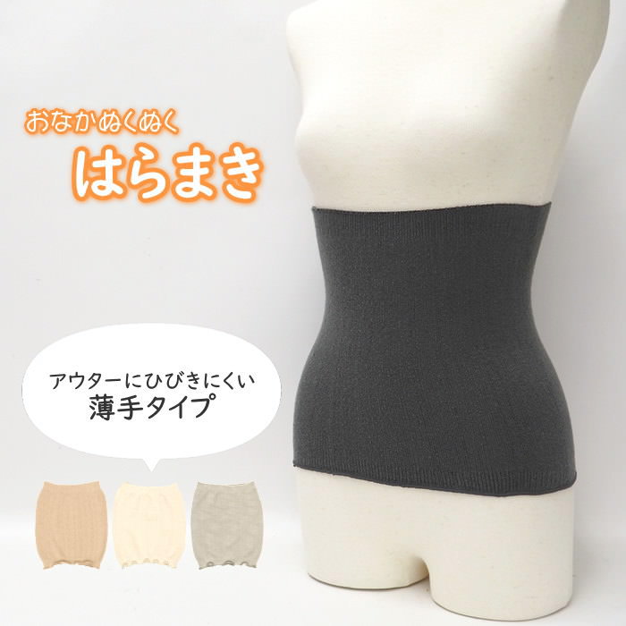 ●シンプルでベーシック、年齢・性別問わないフリーサイズの腹巻きです。無地で薄手だから、アウターにひびきにくく寒い冬も薄着の夏も通年でお使いいただけます。