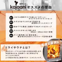 [1]130℃の激熱サウナを楽しむ「カヤーニ」オリジナルサウナテントセットサウナテントでは室温85℃で楽しむロウリュが主流ですが、ロウリュの温度帯では物足りないサウナ上級者の要望に応えるため新しいサウナストーブの開発に着手。試行錯誤の末、
