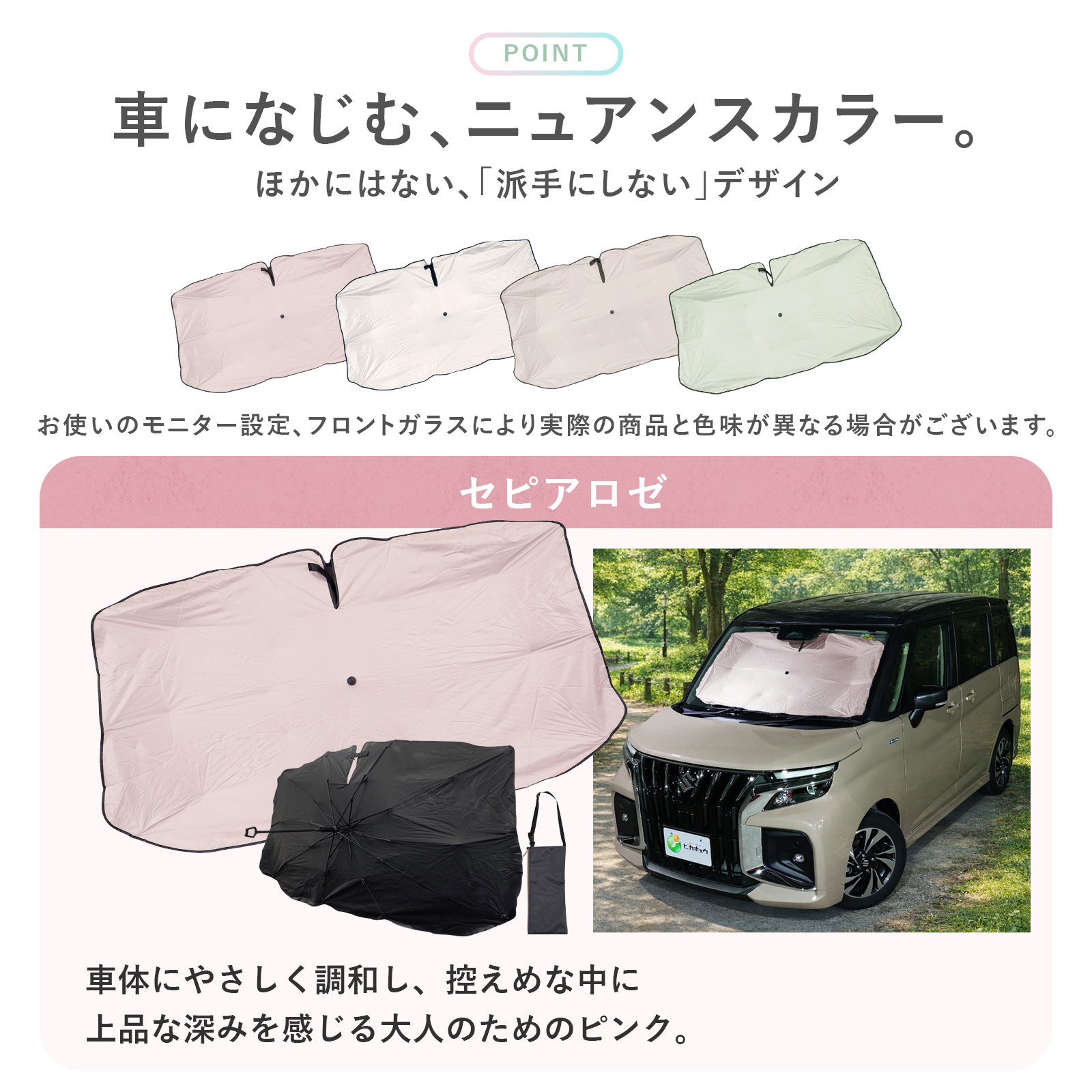 主張しすぎない、わたし色車になじむ、ニュアンスカラー。ほかにはない、「派手にしない」デザイン。