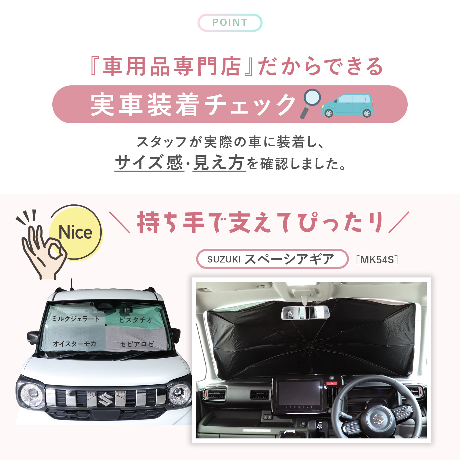 ●気分が上がるカワイイ色車になじむニュアンスカラーをコンセプトに、とことん色にこだわりました。