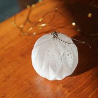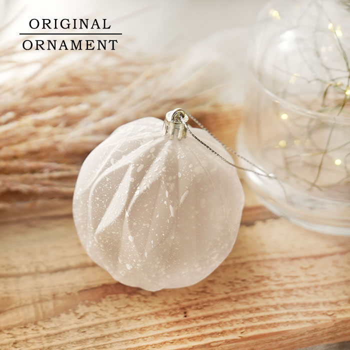 | ★表面にカットグラスのような加工を施したペイントボール。半透明のホワイトボールに白のペイントを重ねることで、上品で清楚な雰囲気に仕上げました。 艶を抑えたマットなオーナメントなのでどんなツリーとも合わせやすく、モノトーンカラーでまとめるとシックで落ち着きのあるディスプレイに、淡い色合いのオーナメント同士で組み合わせると柔らかな雰囲気のディスプレイが出来上がります。 クリスマスツリーに飾るのはもちろん玄関先やリビングのインテリアとしてもお使いいただけます。 標準サイズの8cmボールです。 | |