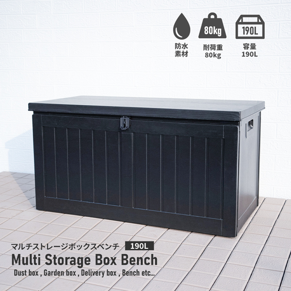 マルチストレージボックス 屋外 ベンチストッカー 収納ボックス ゴミ箱 収納庫 ベランダ 庭 玄関 宅配ボックス ブラック 黒 屋内ストッカー
