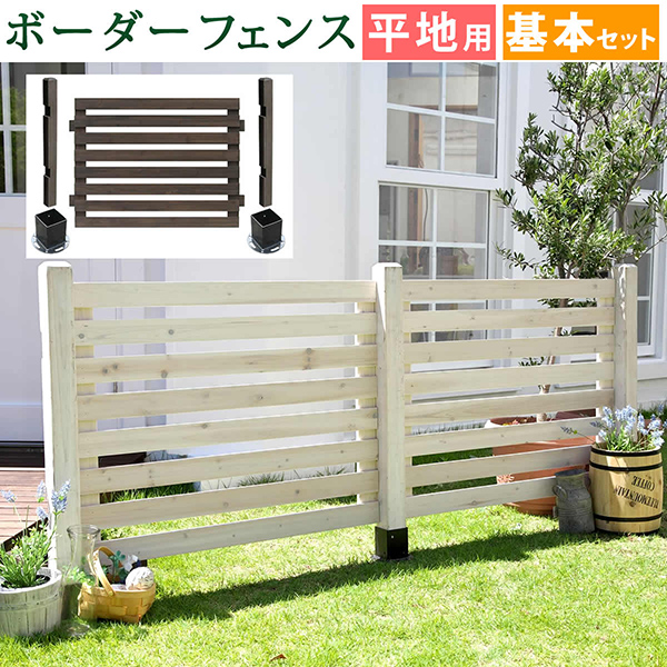 基本セット 平地用 ボーダーフェンス フェンス 木製フェンス ウッドフェンス 天然木製 ガーデンフェンス ガーデニング 枠 柵 仕切り 目隠し 境目 クラシカル
