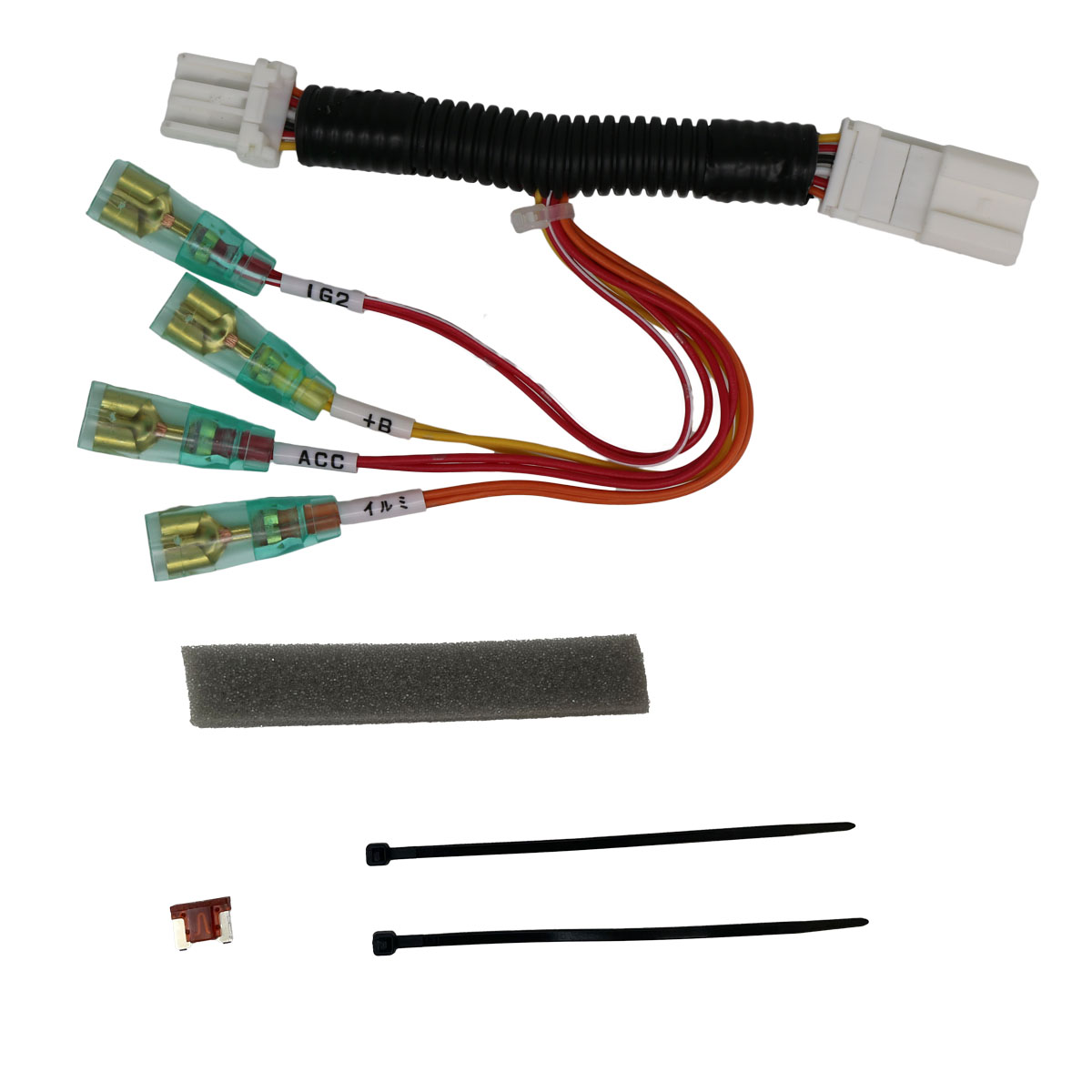 常時電源、ACC、イルミ、IG2の電源取り(通常デッキを外すか、ヒューズから電源をとります)がこれひとつで取り出せます。