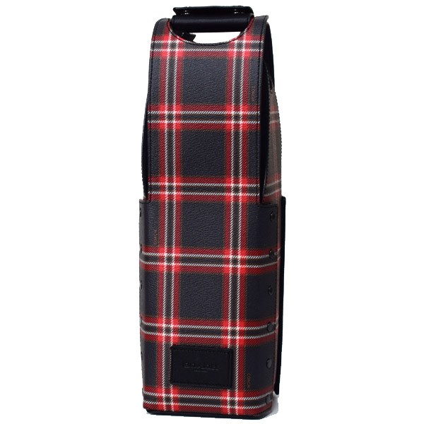 コーチ COACH スムースレザー コーティングキャンバス チェック柄 プリント ワイン ボトル バッグ ミッドナイトネイビーマルチ 38014