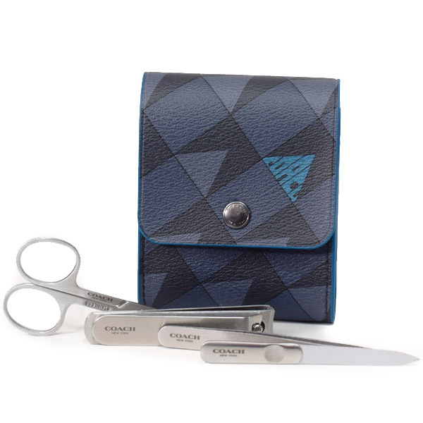 コーチ COACH メンズ コーティングキャンバス チェック ジオ グルーミング キット 爪切り 爪やすり ピンセット ハサミ トラベル セット ネイビー coach2029