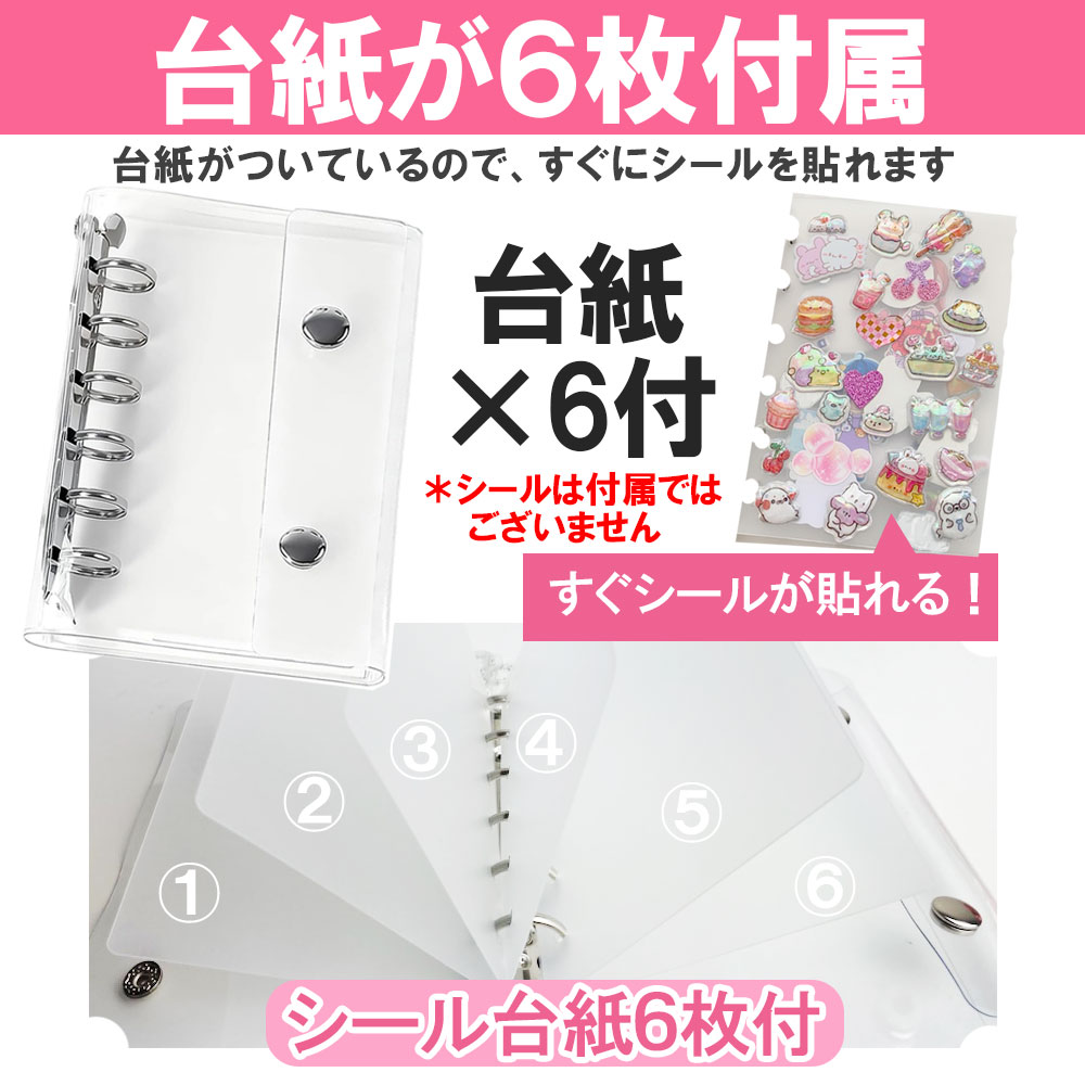 【関連項目】シール帳 バインダー 透明 クリア M5 A7 A6 シールバインダー はがせる シール手帳 6穴 女の子 男の子 大人向け クリアバインダー 推し活グッズ シール 穴開きシート 3D立体シール シール収納 透明シール帳 かわいい 小学生 可愛い 小さい ミニサイズ シール交換帳 デコ活