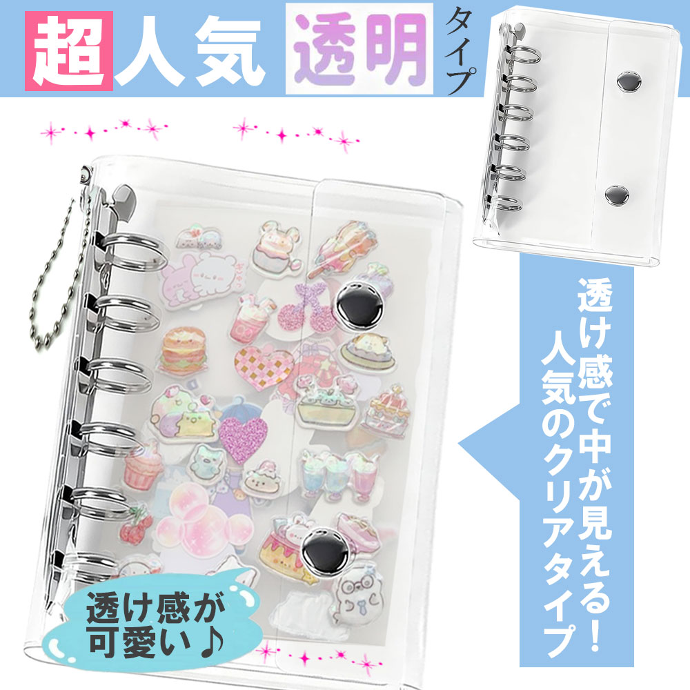 シール帳 バインダー 透明 クリア A7 シールバインダー はがせる シール手帳 6穴 女の子 男の子 大人向け クリアバインダー 推し活グッズ シール