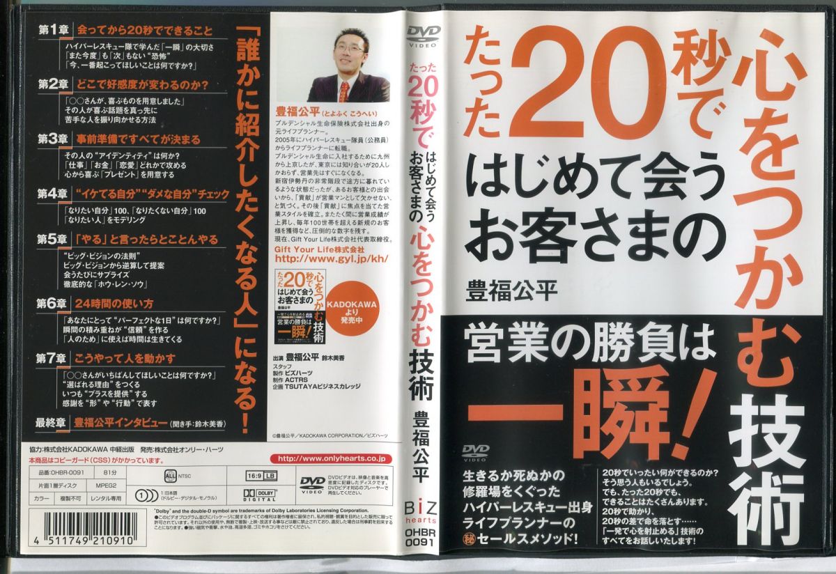 たった20秒ではじめて会うお客さまの心をつかむ技術/中古DVD レンタル落ち/豊福公平/c0323